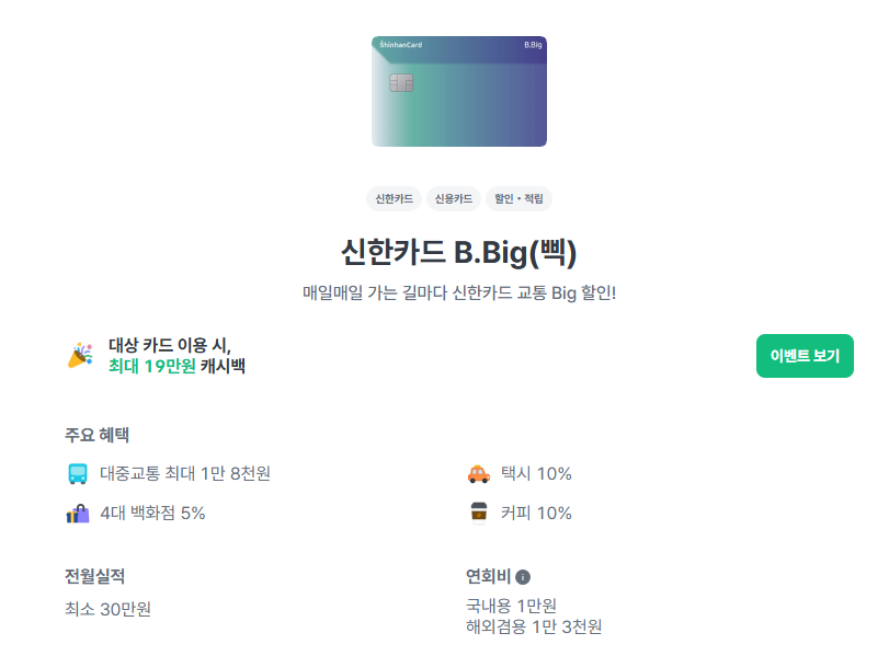 🚊 3위 신한 삑(B.Big) 카드 혜택 정리