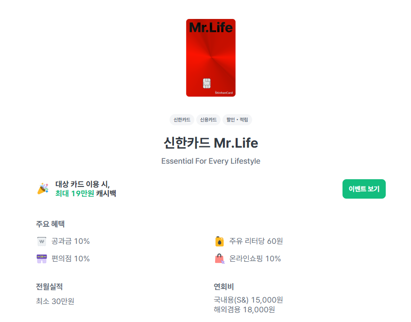 🏆 1위 신한카드 Mr.Life 혜택 정리