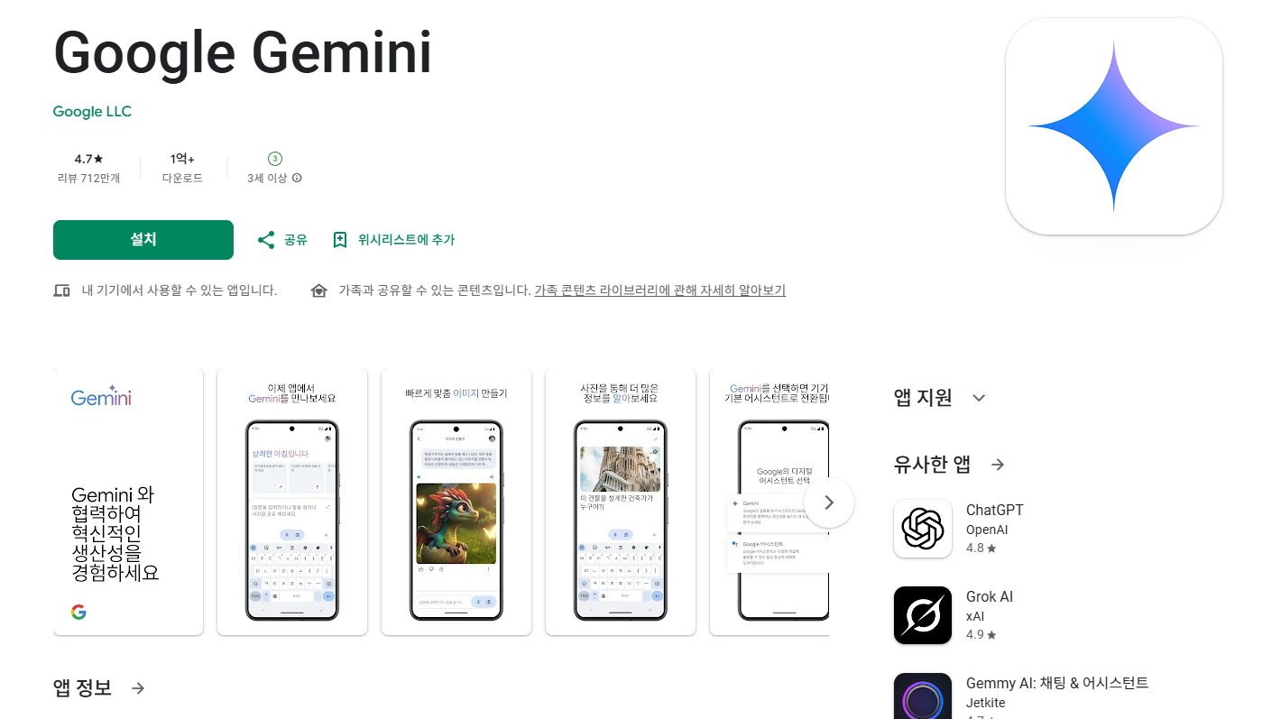제미나이 앱을 사용하기 위한 필수 단계입니다. 문제 발생 시 앱 내 고객센터를 이용하세요.
